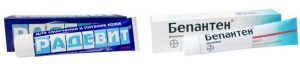 Также хорошо помогает мазь «Радевит». В нем содержится витамин А. Благодаря ему предотвращается пересыхание кожи, возникновение шелушения, повышается местный иммунитет, стимулируется регенерация покрова.