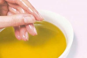 Для проведения процедуры требуется немного подогреть оливковое масло, чтобы оно было теплым и приятным на ощупь. Подогревать лучше всего с помощью водяной бани. Затем нужно опустить кисти в жидкость и держать в течение 15 минут. После окончания данного времени смывать водой нет требуется, нужно просто вытереть руки салфеткой.